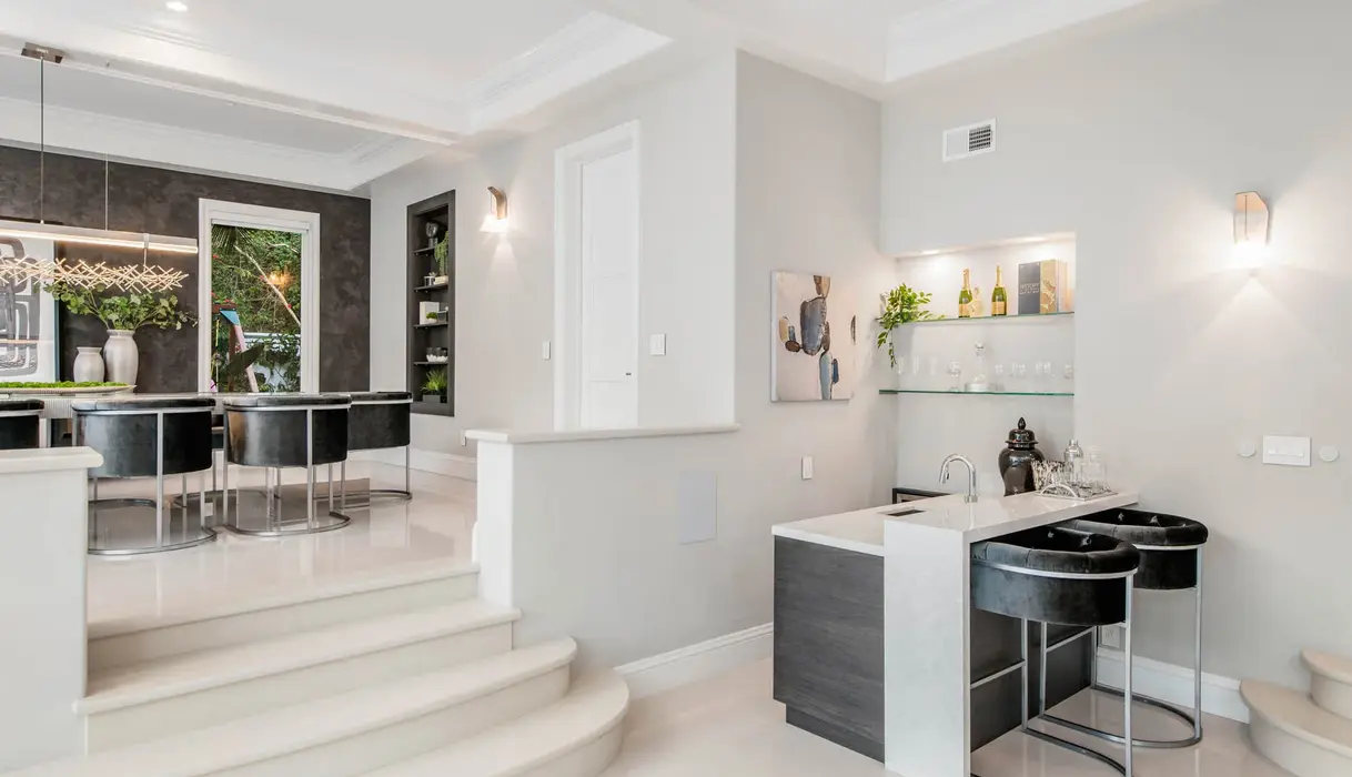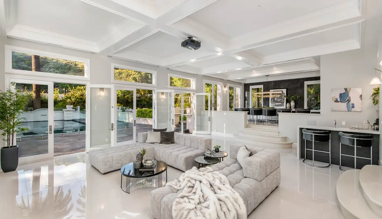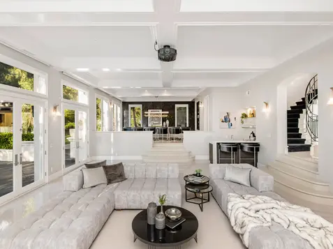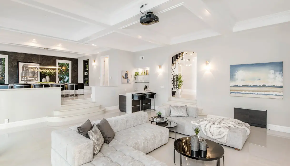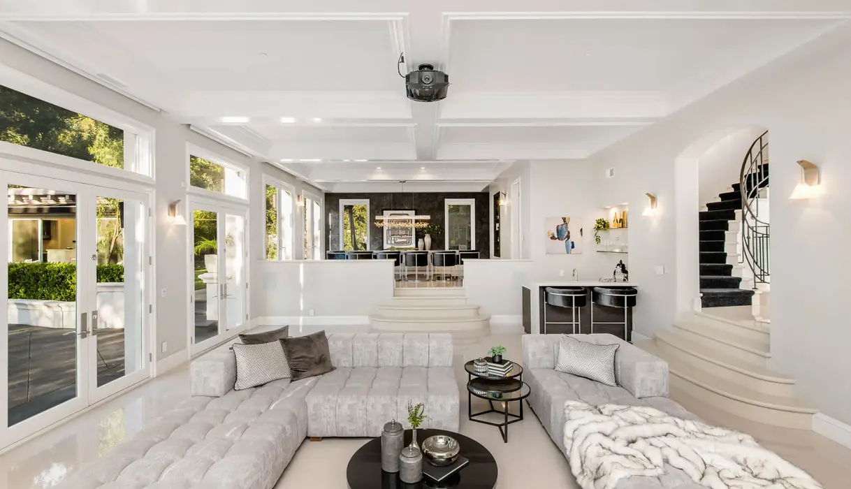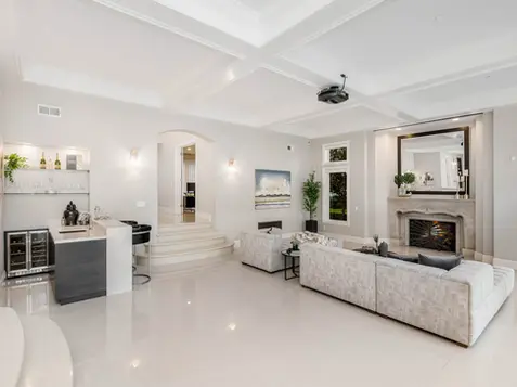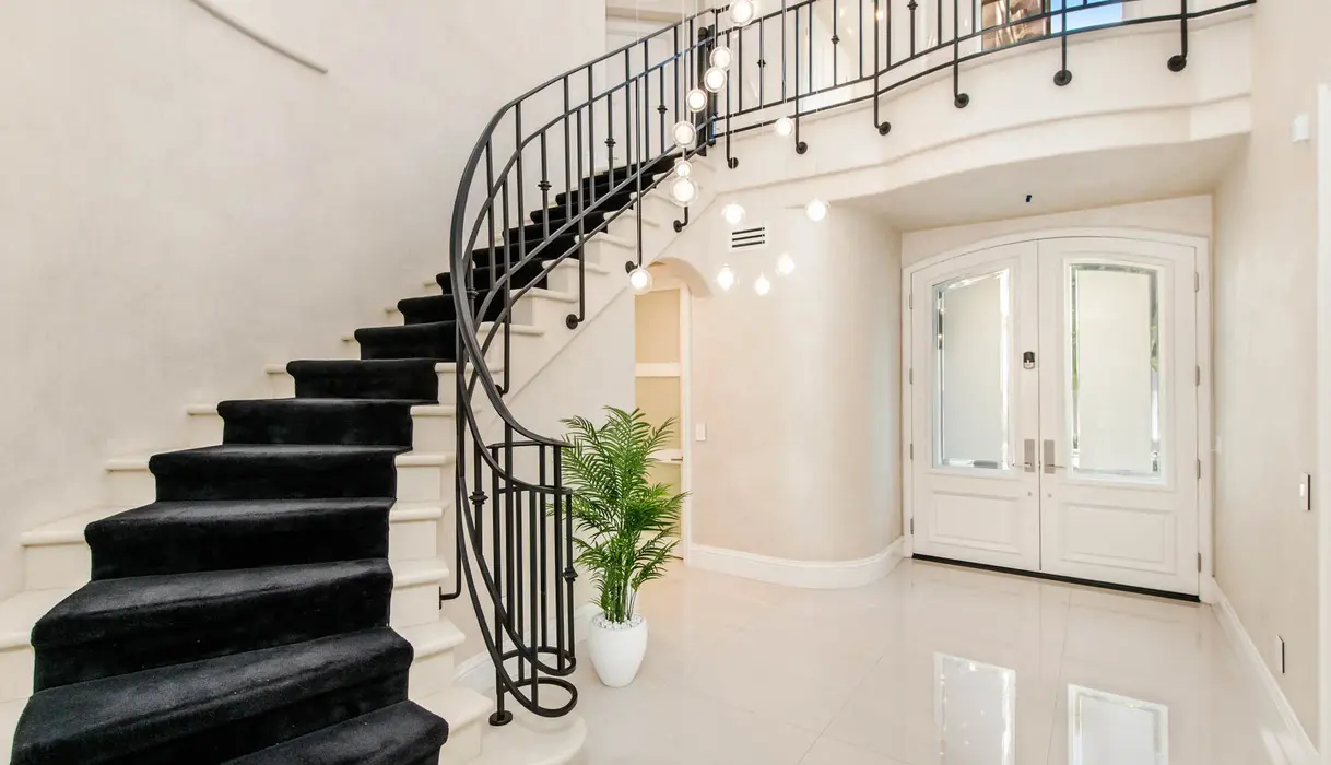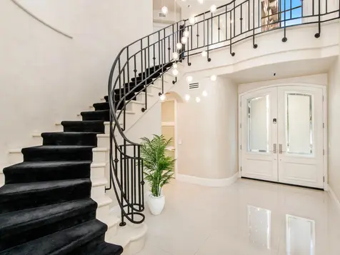 The double-volume entrance welcomes you with natural light and designer chandeliers, leading into expansive living areas adorned with high-end finishes, imported tiles, and bespoke detailing throughout.